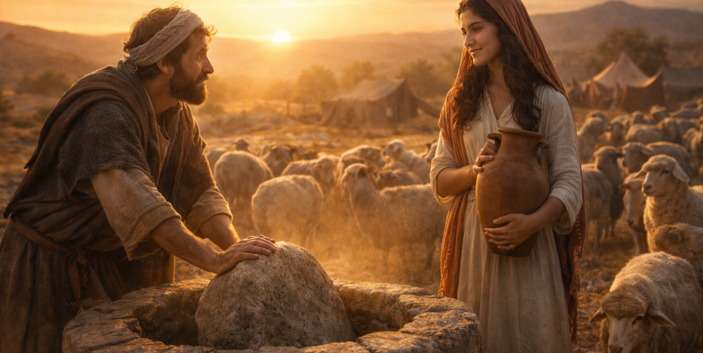 Jacob comes to a well in the field.
